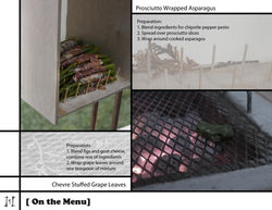 The concept of the lounge and the food was centered around wrapping. The food display and the seating wrapped around a central hearth where people would gather to socialize and heat their food.